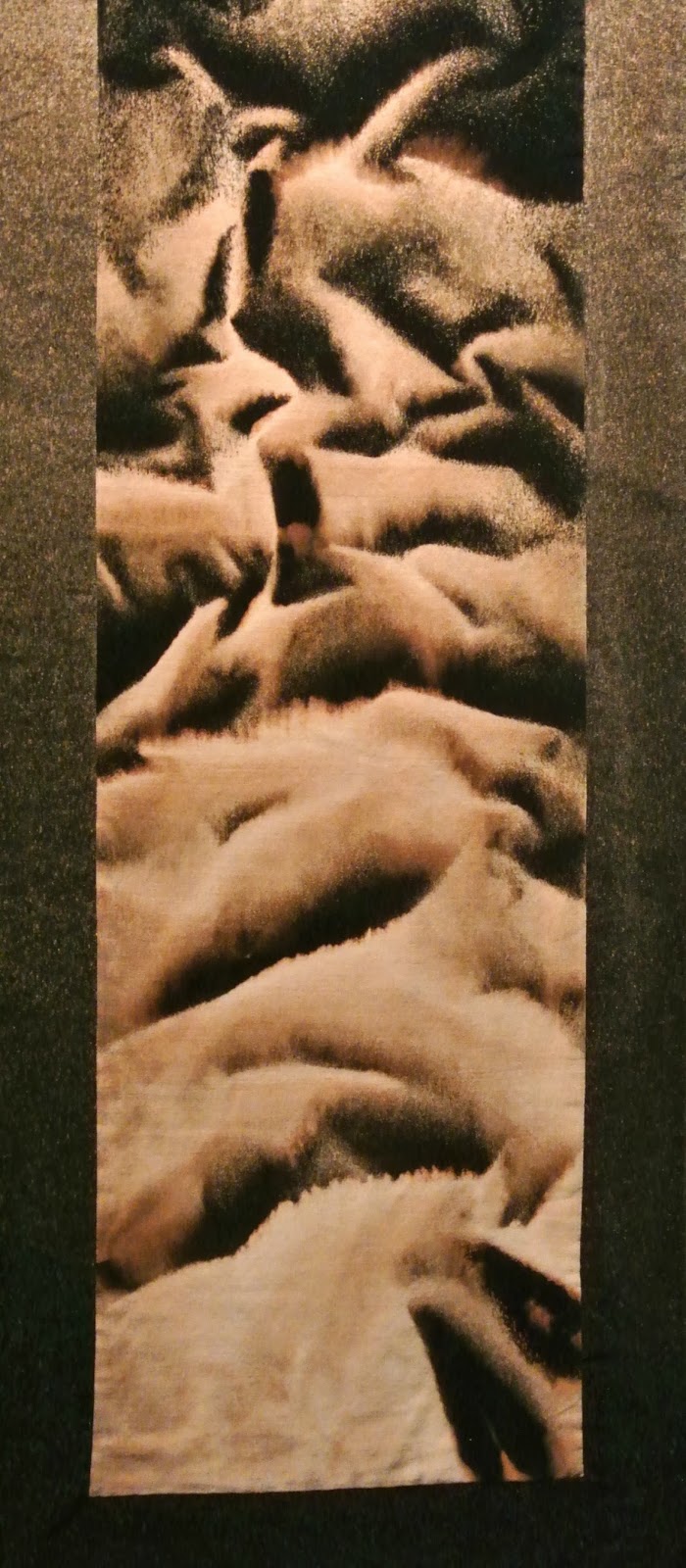 Much of the work is silk in silk or rayon. The pieces are large and would be amazing in a public space. Regina dyes and discharges with some rust exposure.